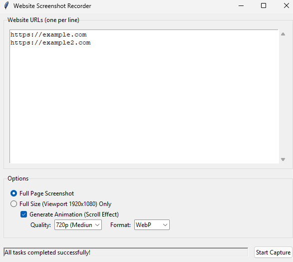 A powerful Python desktop application that allows you to capture high-quality full-page screenshots of websites and convert them into smooth scrolling animations (GIF or WebP).